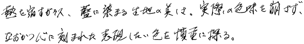 I looked for the colors which faithfully expressed my impressions, while retaining the original colors.