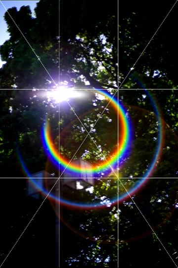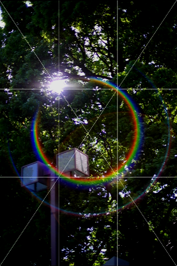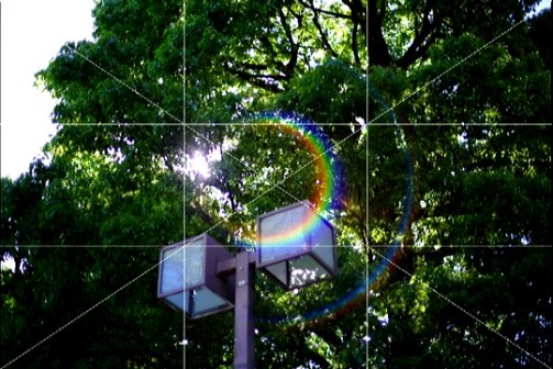 However, when a bright light source with a certain amount of light is within the angle of view, the appearance will vary depending on the angle of incidence and the degree of concentration and diffusion of the light rays. When shooting night scenes, it may be difficult to see in the viewfinder. In this case, use Live View to display the grid in 16 or 9 segments (golden segments), and position the bright light source near the intersection of the segment lines to make it easier to see the "rainbow flare" phenomenon.