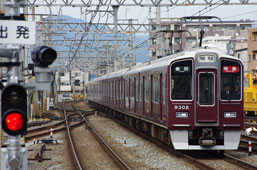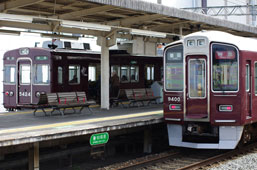 待避線に5300系の準急・大阪梅田行き。あとからの9300系特急が先に桂駅を出て行く。昼間はこのパターンの繰り返しである。