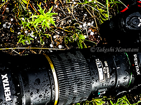 5月下旬、白頭鷲の巣を撮影中ににわか雨が降りだした。防塵防滴ボディとレンズの組み合わせのため気にせず撮影を続けた。体に当たる雨粒が大きくなってきたと思ったら、雨はいつの間にか雹になっていた。