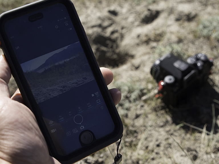 バイソンは存在感があるものの動きが乏しく、画になる瞬間を捉えるには忍耐と運が必要です。今回掲載のアップの写真は、草を食べながらゆっくりとほぼ直進するバイソンの習性を利用し、進行方向上にPENTAX KPを地面に直置きしてスマートフォンアプリのImage Syncを使ってリモート撮影したものです。遠隔撮影に特殊機材を必要としたのは昔の話。写真のデジタル化と通信技術の融合で、手持ちのもので誰でも気軽に特殊撮影に挑めるようになりました。