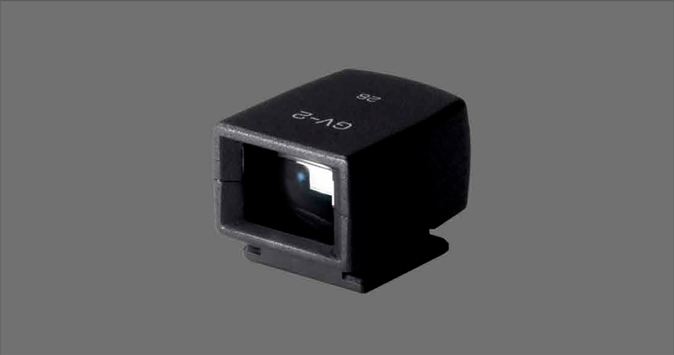 光学式で視野率約85%。28mm相当(35ミリ判換算)用のフレーム(縦横比1:1撮影用マーク入り)付きです。ケース付属。