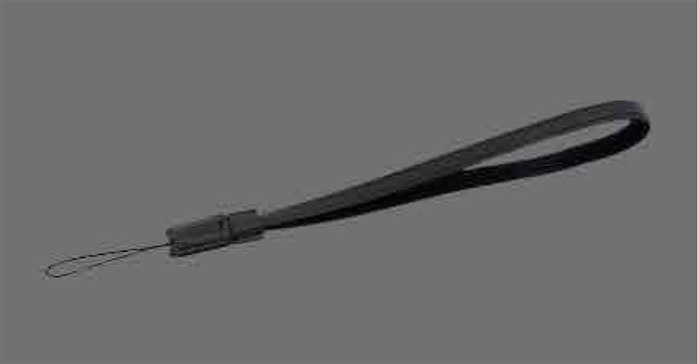 2点吊りのネックストラップ。「RICOH」のロゴ刺繍入りで、形状はGS-3と同じです。
