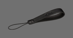 1点吊りのハンドストラップ。高級感のある本革製。「GR」の型押しロゴ入りです。