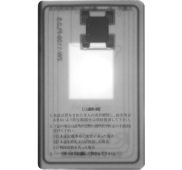 ICカード表面に印刷されたインクを透過して、内部の回路を撮影可能です。