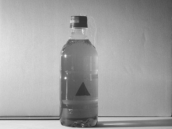 ミルク成分の無いブラックコーヒーは赤外線を透過しペットボトルの裏に▲のシールが見えます。