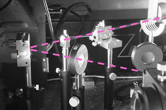 赤外レーザー照射でミラー部が赤く見えますがどのような照射になっているかが分かりません。