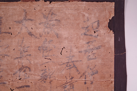 紙が変色し表面にカビのような白い粉が付着して墨の文字が読みにくいです。