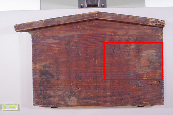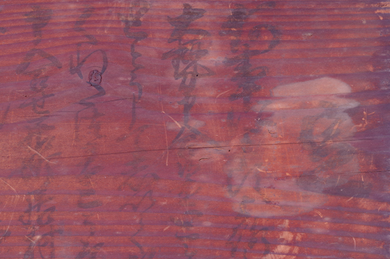 長期保存のため木材表面の変色/文字の退色が見られ読みづらくなっています。