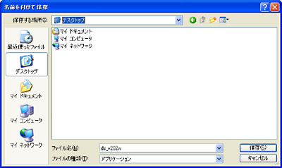 | [2] 「名前をつけて保存」ウインドウが開きますので、パソコン内の任意の場所を指定して「保存」を左でクリックします。後の工程で、このファイルを使用します。どこに保存したか必ず覚えておいてください。 「ダウンロードの完了」ウインドウが表示したら、「閉じる」を左でクリックします。 |