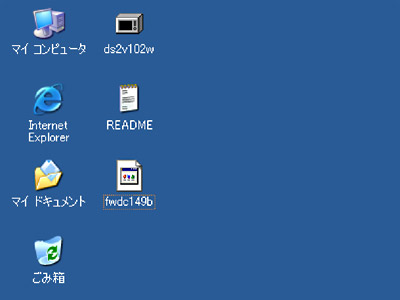 | [5] ダウンロードしたファイルをダブルクリックして解凍すると、以下の2つのファイルができあがります。 ■ fwdc131b.bin・・・ファームウェア本体 ■ readme.txt・・・ファームウェアのアップデート方法が書かれています。 |