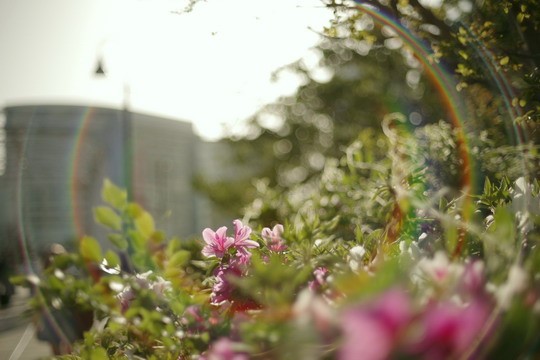 晴れた日の屋外で「虹色フレア」が出る条件での撮影ではNDフィルターを装着して撮影していただく事をお勧め致します。