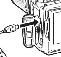 4. カメラの端子カバーを開き、カメラのUSB端子にUSBケーブルを接続します。
